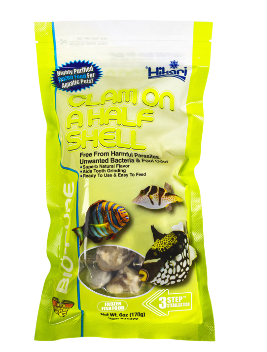 Un aliment naturel et nutritif, idéal pour les poissons tropicaux carnivores, notamment les espèces difficiles à nourrir ou celles qui doivent user leurs dents. Les clams sur demi-coquille offrent une texture stimulante et une excellente alternative pour compléter une alimentation formulée.